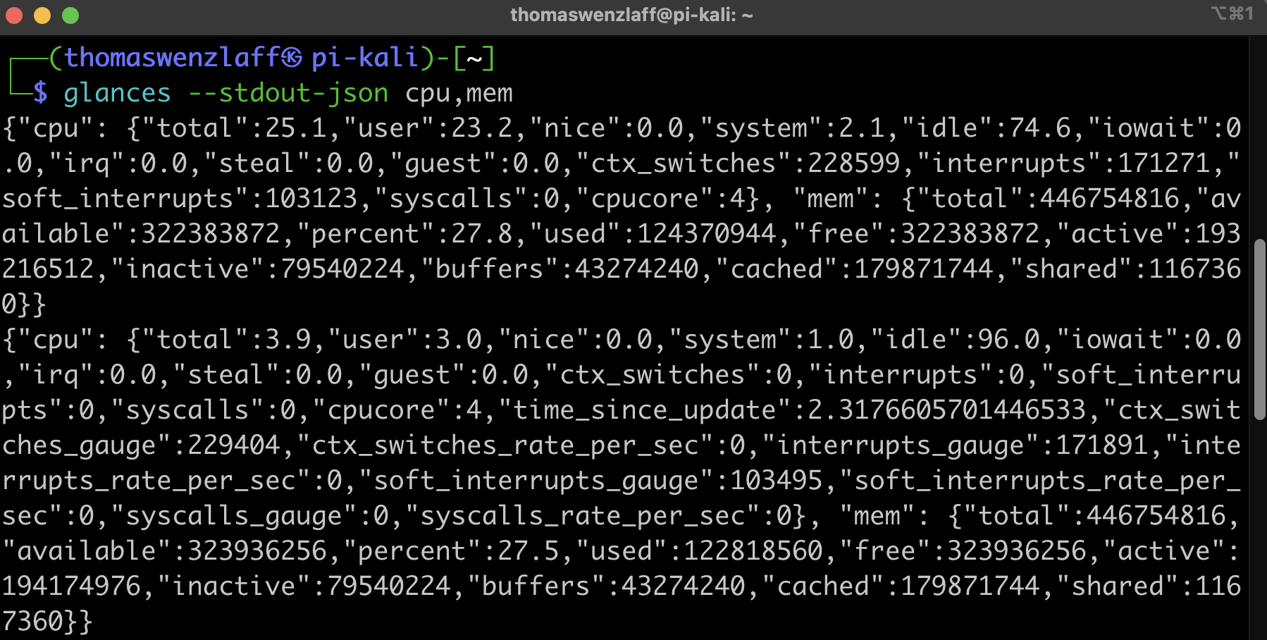 glances –stdout-json cpu,mem