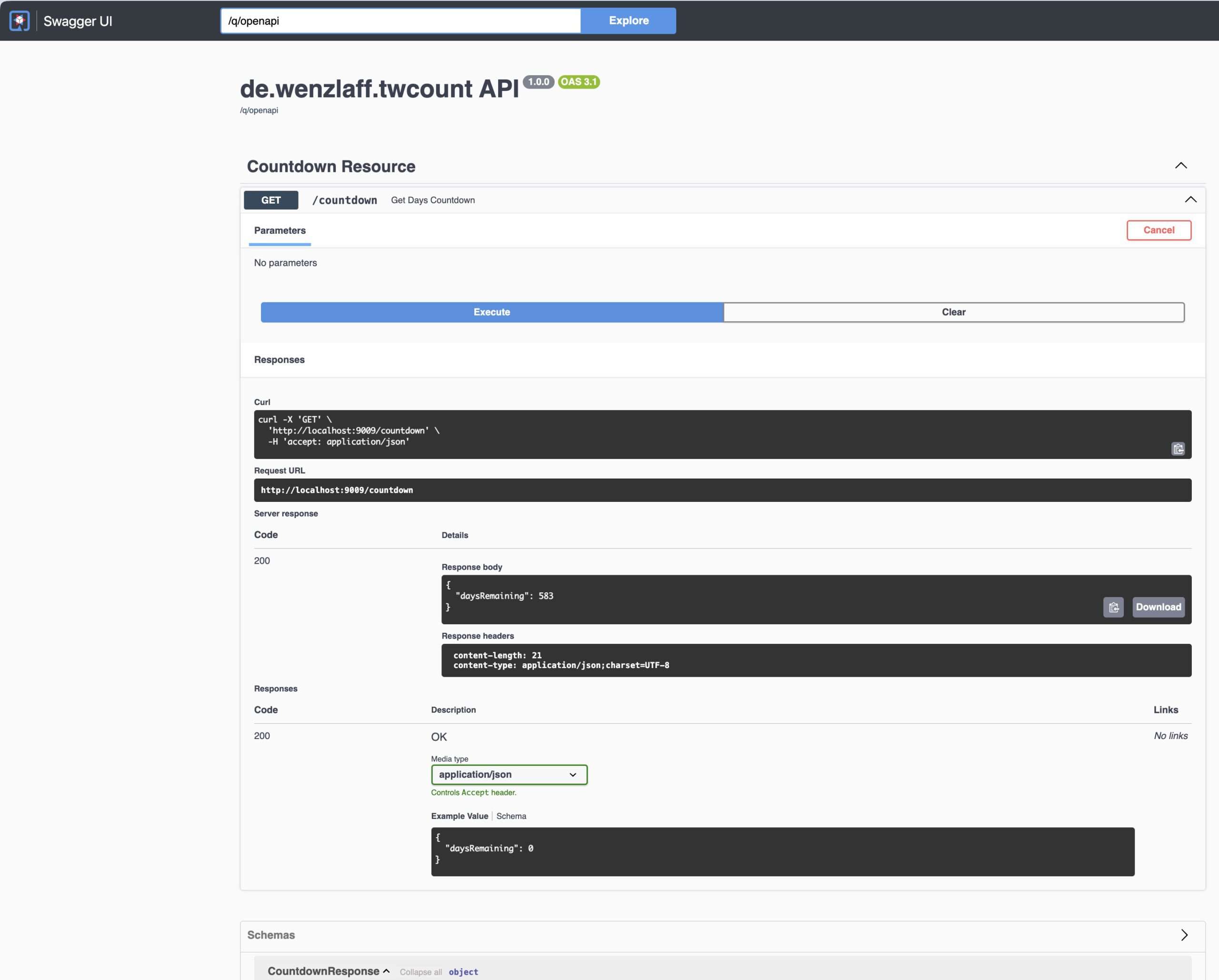 Swagger UI läuft auch mit: http://localhost:9009/q/swagger-ui/